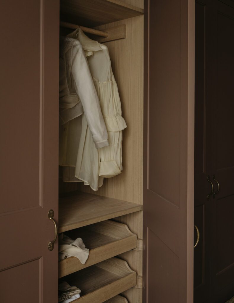 We believe the interior and exterior of your custom wardrobe should be equally beautiful. Our cupboards and cabinetry are traditionally hand-painted, with a curated palette of exclusive paint colors and hand-cast ironmongery finishes to choose from. Our designers will help you select a finish that reflects the character of the space and coordinates with adjacent rooms. No detail—no matter how small—is overlooked.